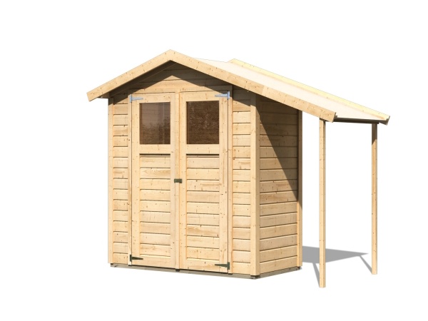 Základný model dreveného domčeka pre vašu záhradu. Tento model má sedlovú strechu a dvojkrídlové dvere na pántoch s oknom v každom krídle. Stavebným materiálom domčeku sú drevené profily hrúbky 14 mm perfektne vyfrézovane zo severského smreku. Dodávame ako stavebnicu v rozloženom stave, kde steny tvoria predpripravené menšie panely, ktoré iba zoskrutkujete k sebe a strechu tvorí celistvá doska. To garantuje extrémne jednoduchú montáž, ktorú zvládne každý domáci majster.